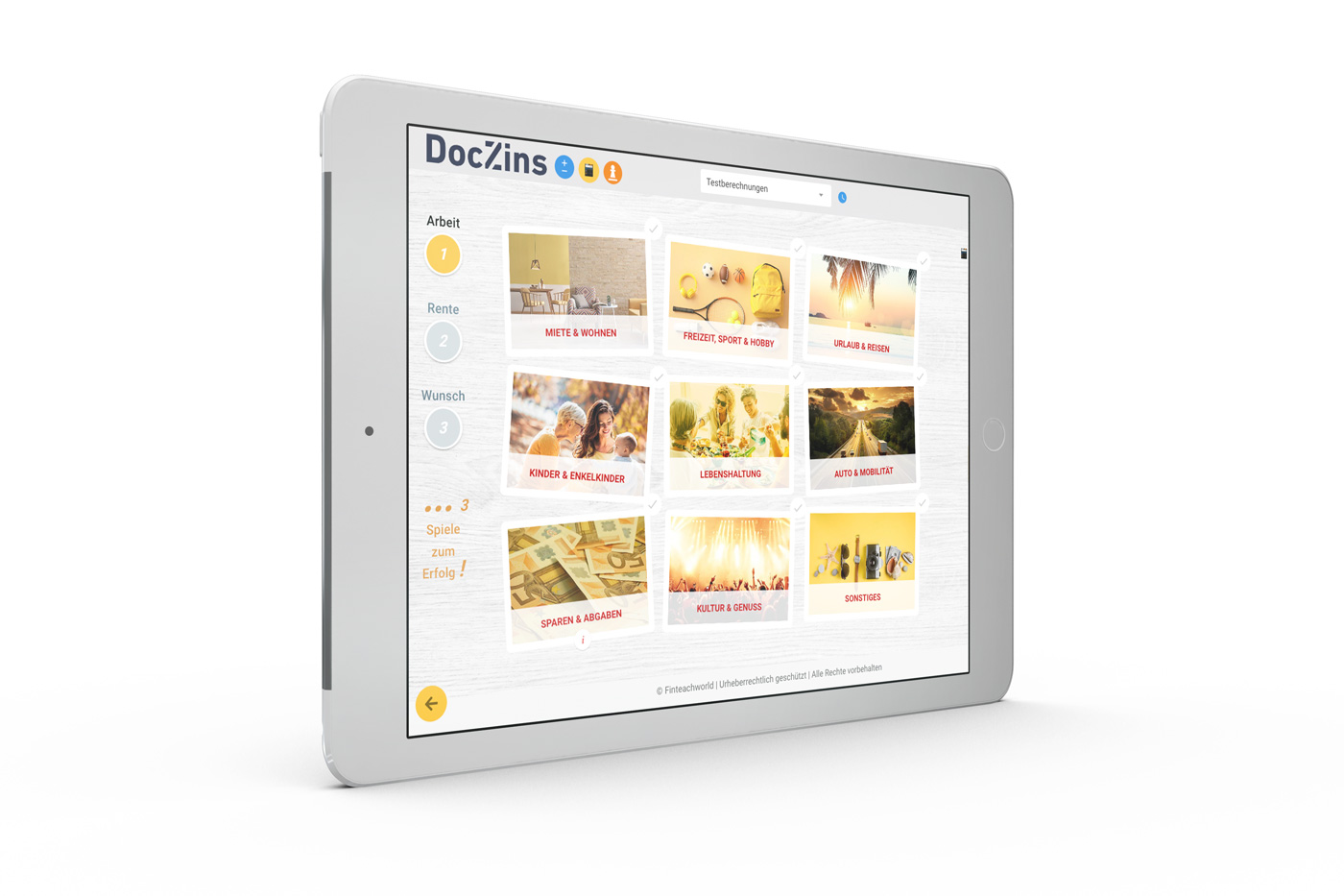 2022 hat standpunkt digital mit Prof. Dr. Bernd W. Klöckner ein weiteres Portal entwickelt und programmiert, welches einzigartige Funktionen für die Finanzbranche bereit hält. Neben einem finanzmathematischen Rechner wurde dabei das Portfolio um das Rentenspiel erweitert. Das Rentenspiel ist ein von uns in die digitale Welt übertragenes Brettspiel. Neben der digitalen Bedienbarkeit (UX), war es wichtig, einen Mehrwert für das Portal zu schaffen. Der DocZins StepCalc wurde ebenfalls in das Portal integriert und rundet eine ganzheitliche Beratung für Finanzdienstleister ab. Das Portal basiert weiterhin auf dem Headless CMS Strapi. Darüber ist die Integration von alten Kundenstämmen in die neue Plattform problemlos möglich.